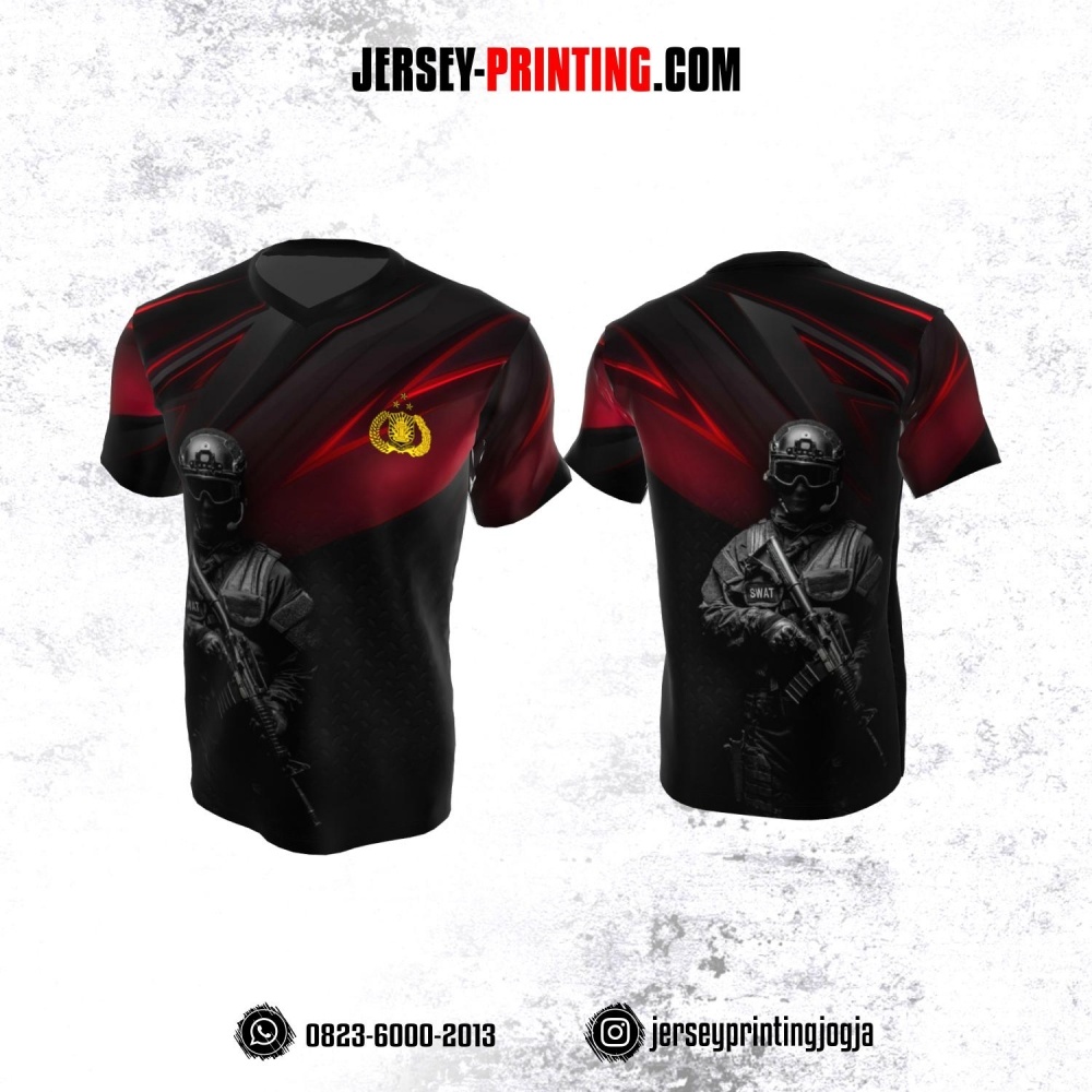Jersey Polisi Polri Hitam Abu-abu Merah Motif Seamless