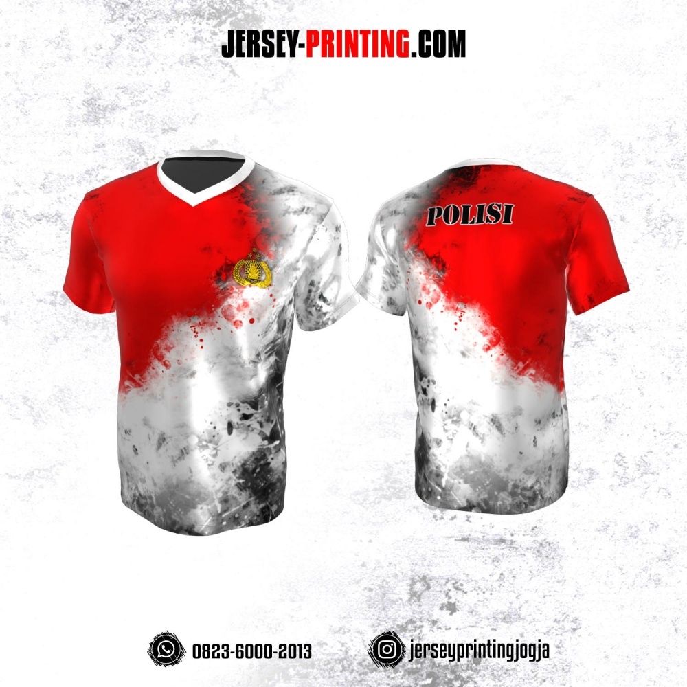 Jersey Polisi Polri Merah Putih Abu-abu Motif Brush