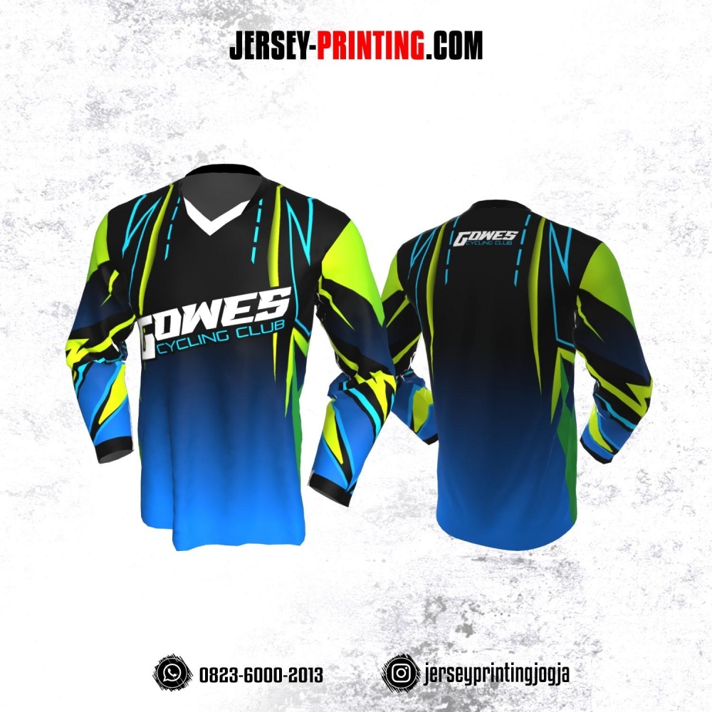 Jersey Gowes Sepeda Biru Hitam Hijau Kilat Lengan Panjang