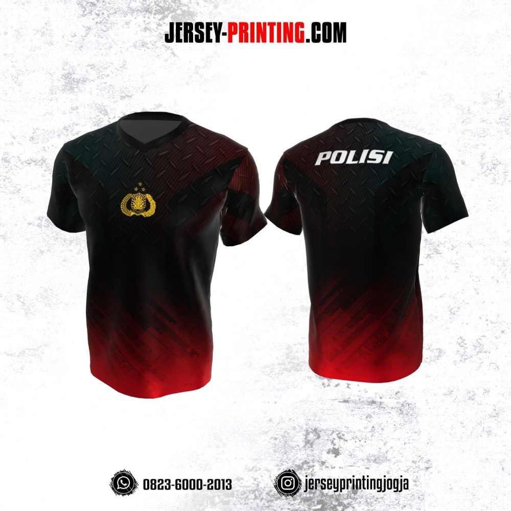 Jersey Polisi Polri Hitam Merah Motif Seamless