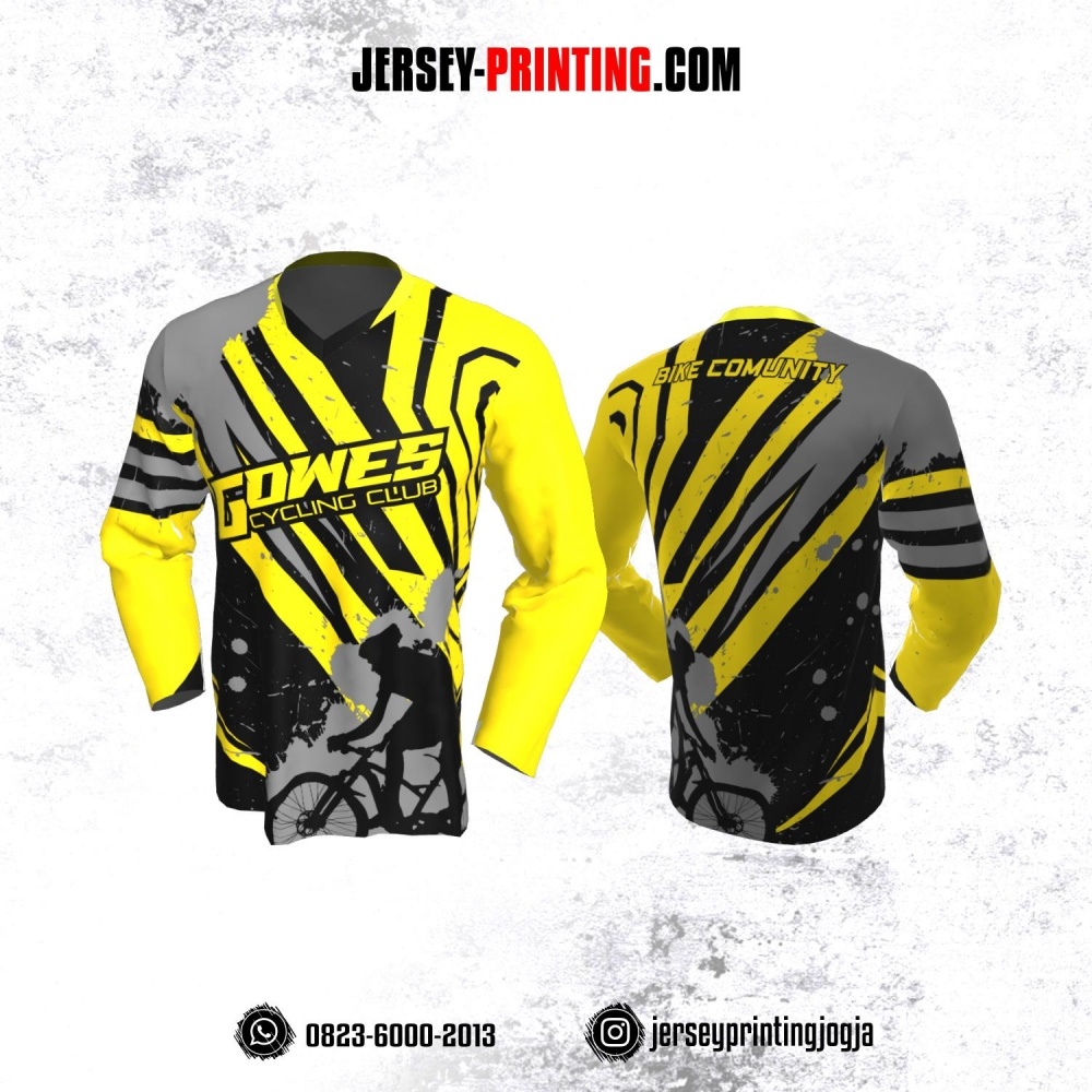Jersey Gowes Sepeda Kuning Hitam Abu Lengan Panjang