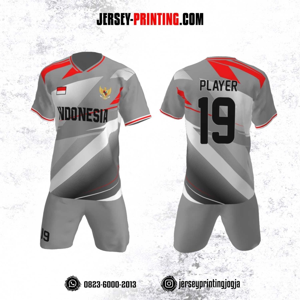 Jersey Futsal Motif Garis Merah Abu-Abu