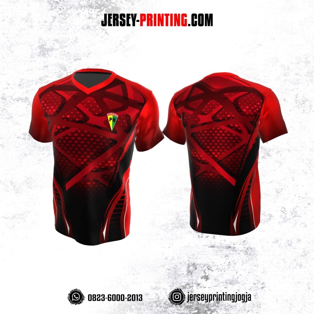 Jersey Polisi Militer PM Merah Maroon Hitam Motif Polkadot dan Abstrak