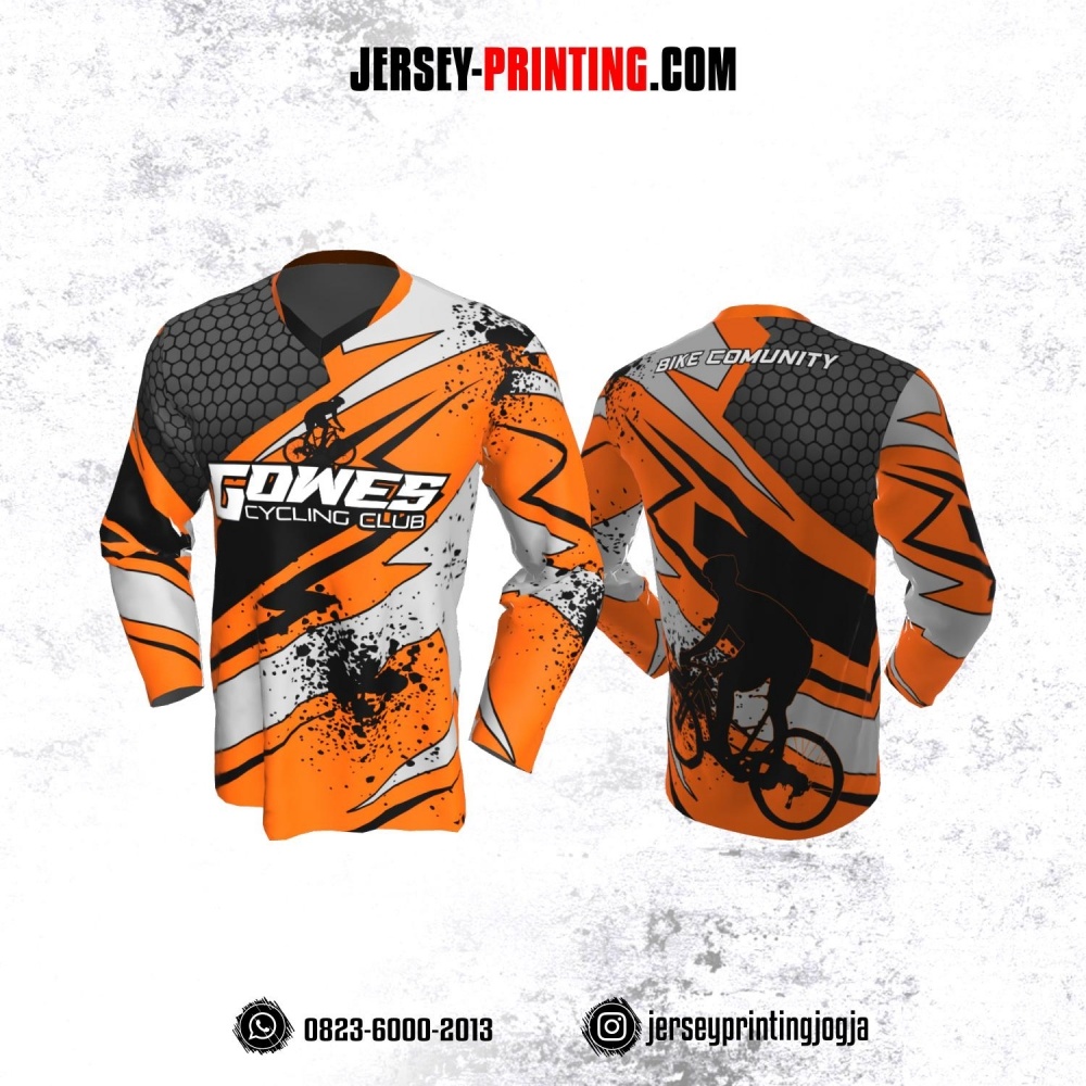 Jersey Gowes Sepeda Orange Hitam Abu Honeycomb Lengan Panjang