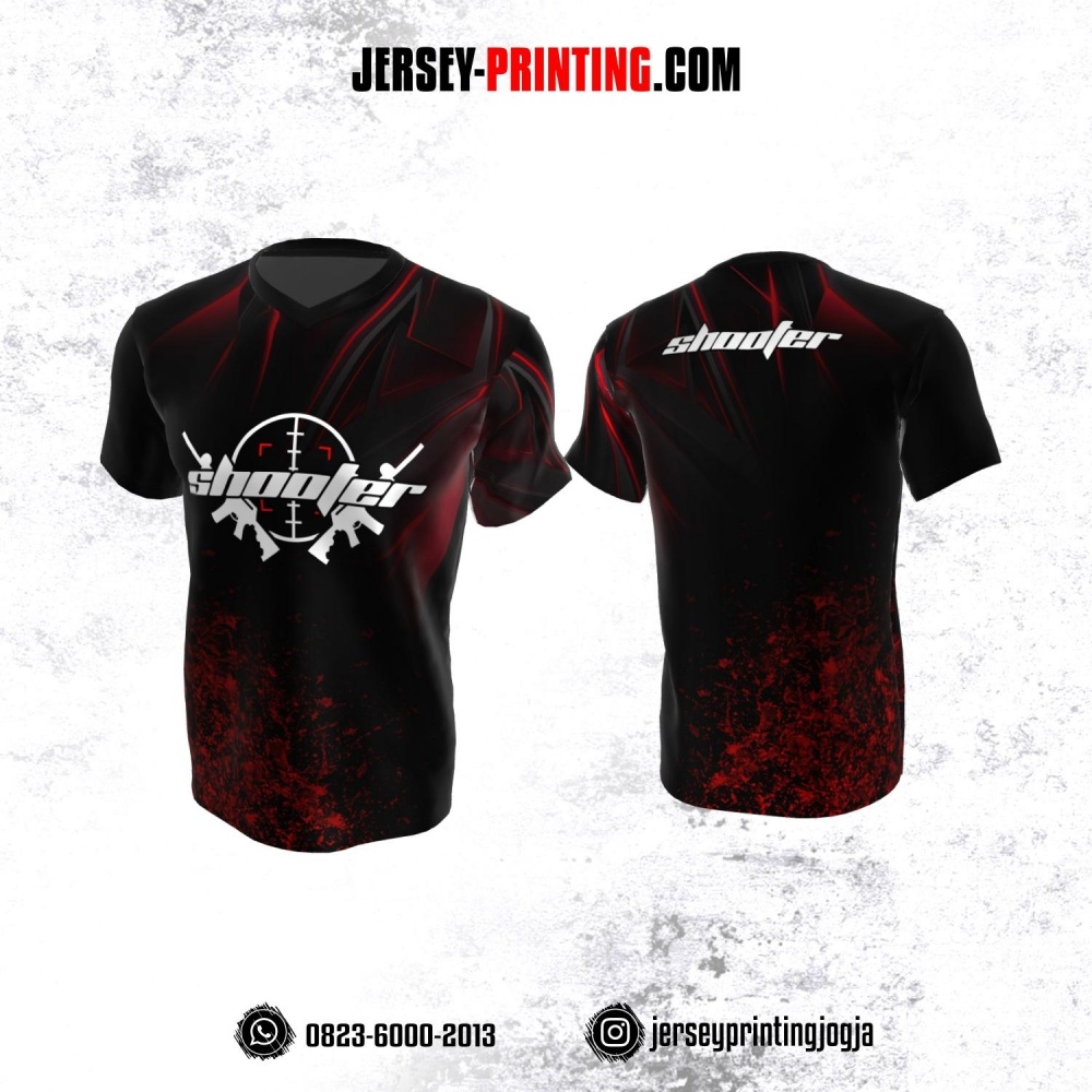Baju Kaos Jersey Menembak Shooter Shooting Hitam Merah Abu-abu Motif Bercak