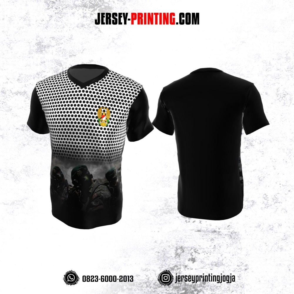 Jersey Militer Tentara TNI AD Angkatan Darat Hitam Putih Motif Polkadot