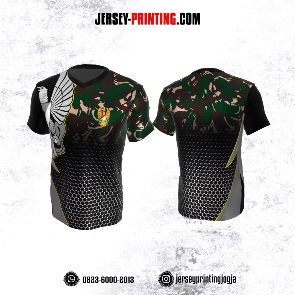 Jersey Militer Tentara TNI AD Angkatan Darat Hitam Abu-abu Coklat Hijau Motif Honeycomb dan Loreng
