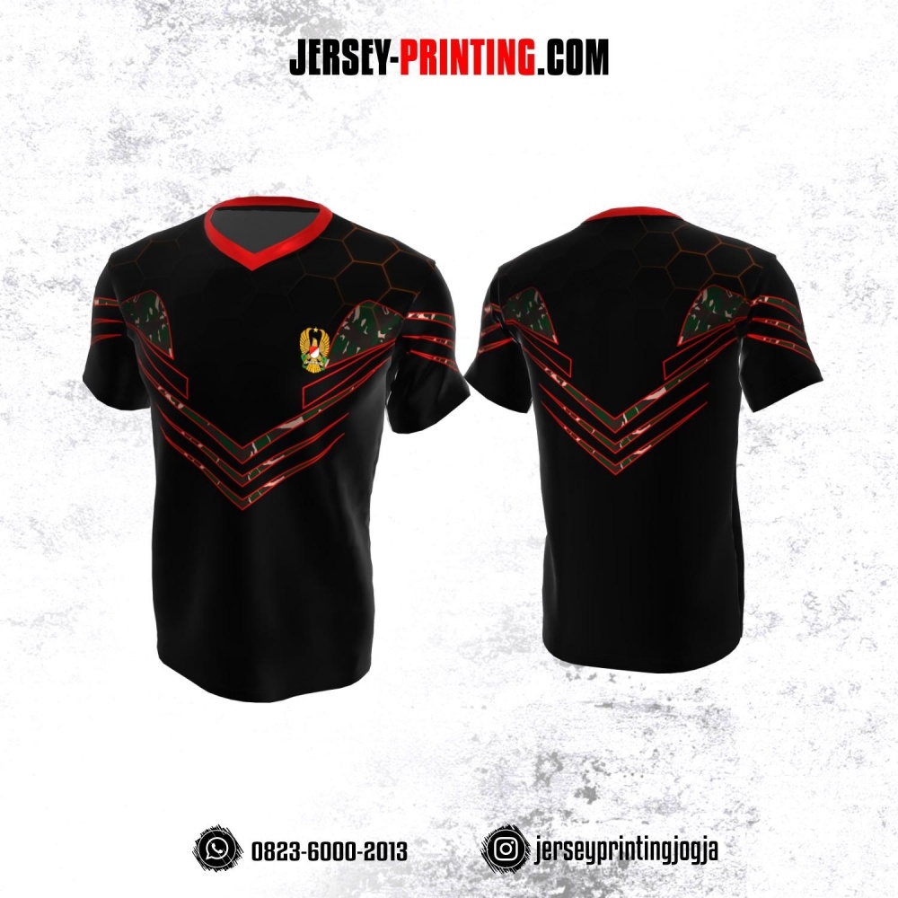 Jersey Militer Tentara TNI AD Angkatan Darat Hitam Merah Hijau Coklat Motif Loreng