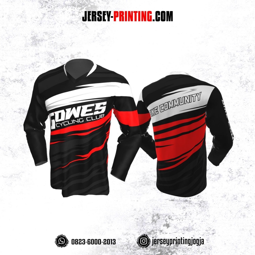 Jersey Gowes Sepeda Hitam Merah Putih Abu Lengan Panjang