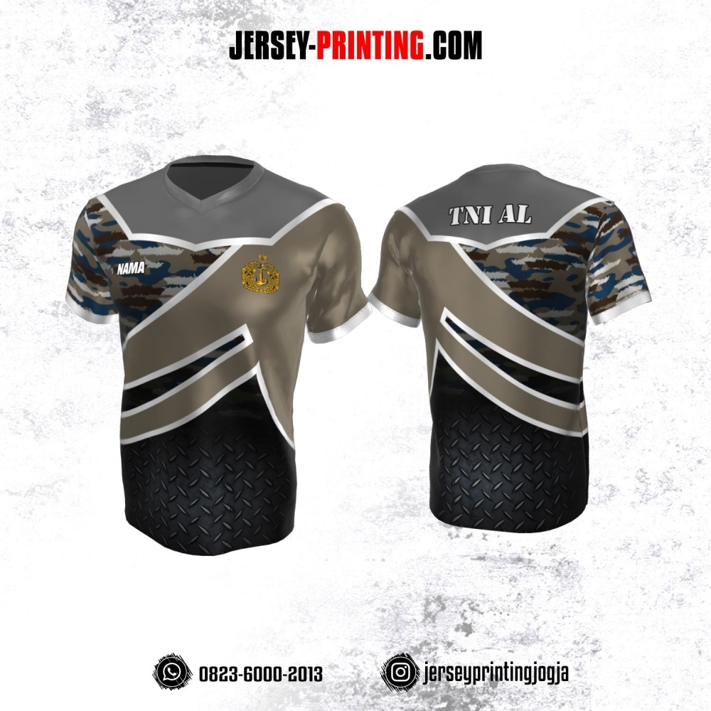 Jersey Militer Tentara TNI AL Angkatan Laut Coklat Abu-abu Putih Biru Motif Seamless