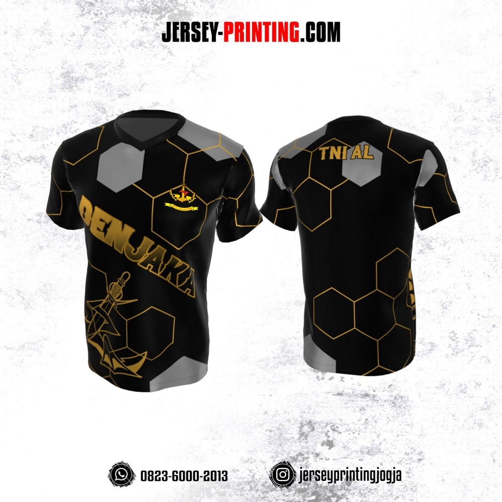Jersey Militer Tentara TNI AL Angkatan Laut Hitam Emas Abu-abu Motif Hexagon