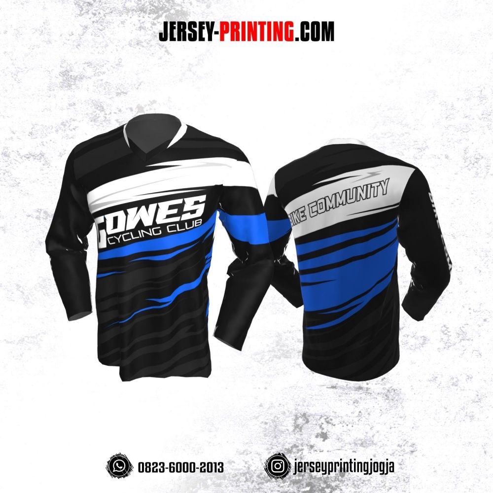 Jersey Gowes Sepeda Hitam Biru Putih Abu Lengan Panjang