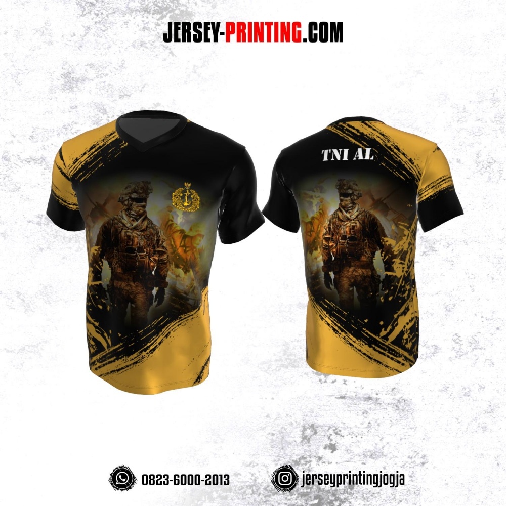 Jersey Militer Tentara TNI AL Angkatan Laut Emas Hitam Motif Brush