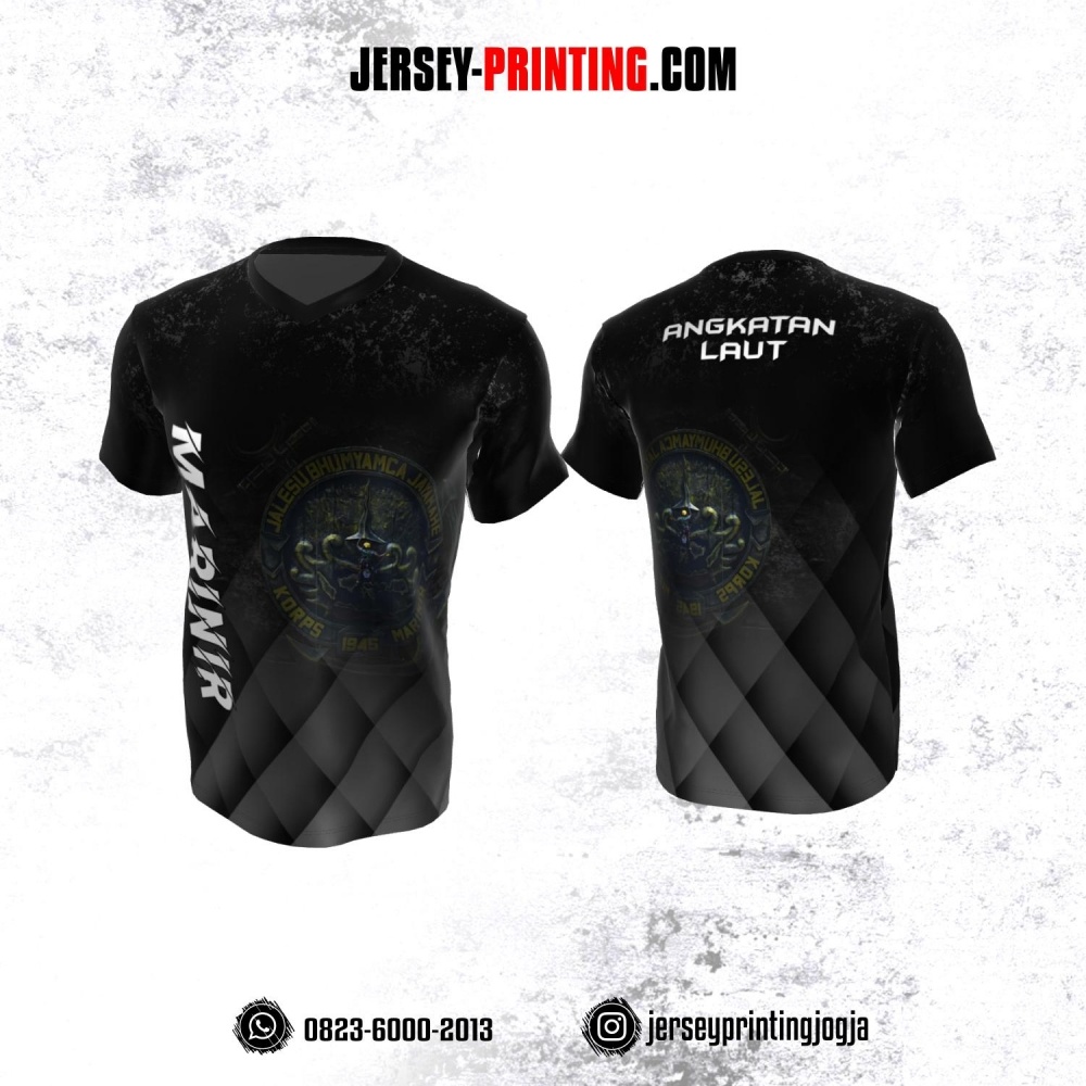 Jersey Militer Tentara TNI AL Angkatan Laut Hitam Abu-abu Motif Geometris