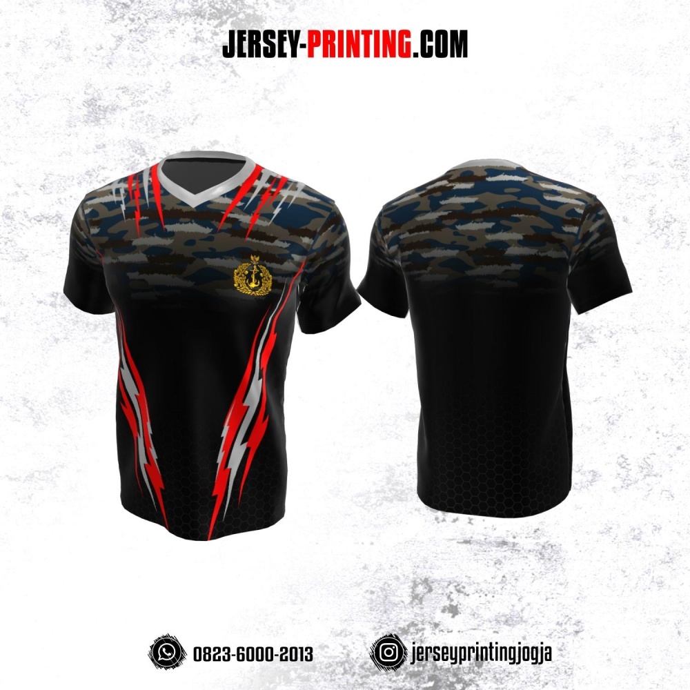 Jersey Militer Tentara TNI AL Angkatan Laut Hitam Coklat Abu-abu Merah Biru Motif Loreng