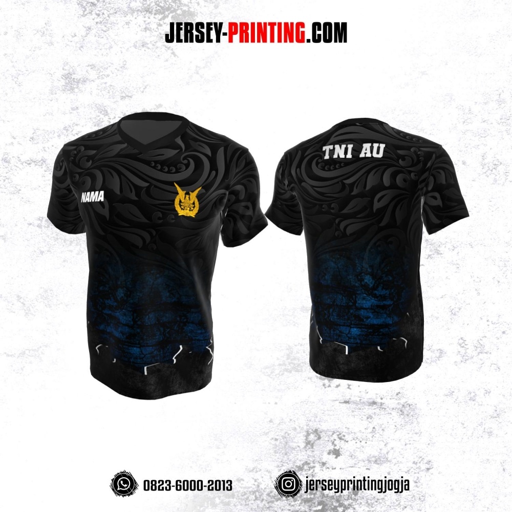Jersey Militer Tentara TNI AU Angkatan Udara Hitam Abu-abu Biru Motif Floral