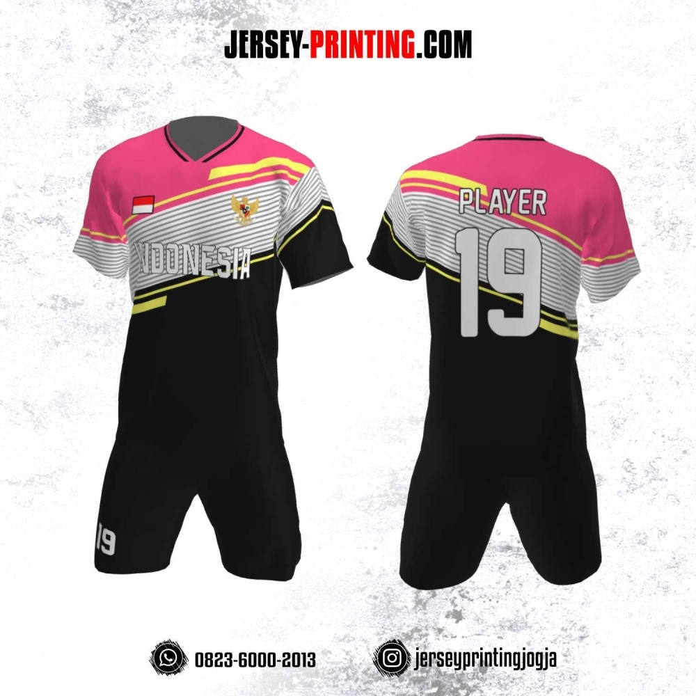 Jersey Futsal Motif Strip Abu-Abu Kuning Pink