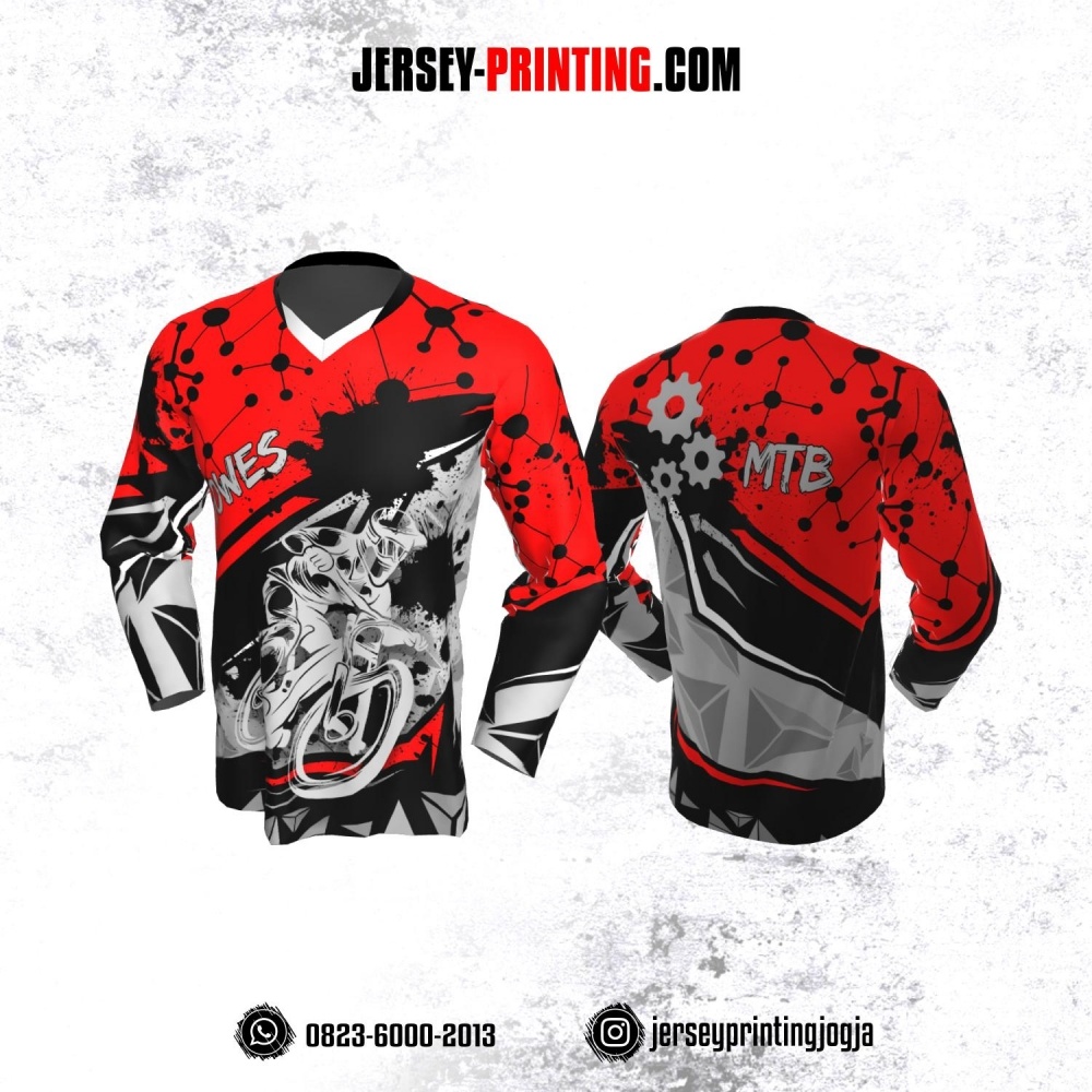 Jersey Gowes Sepeda Hitam Merah Abu Dot Line Lengan Panjang