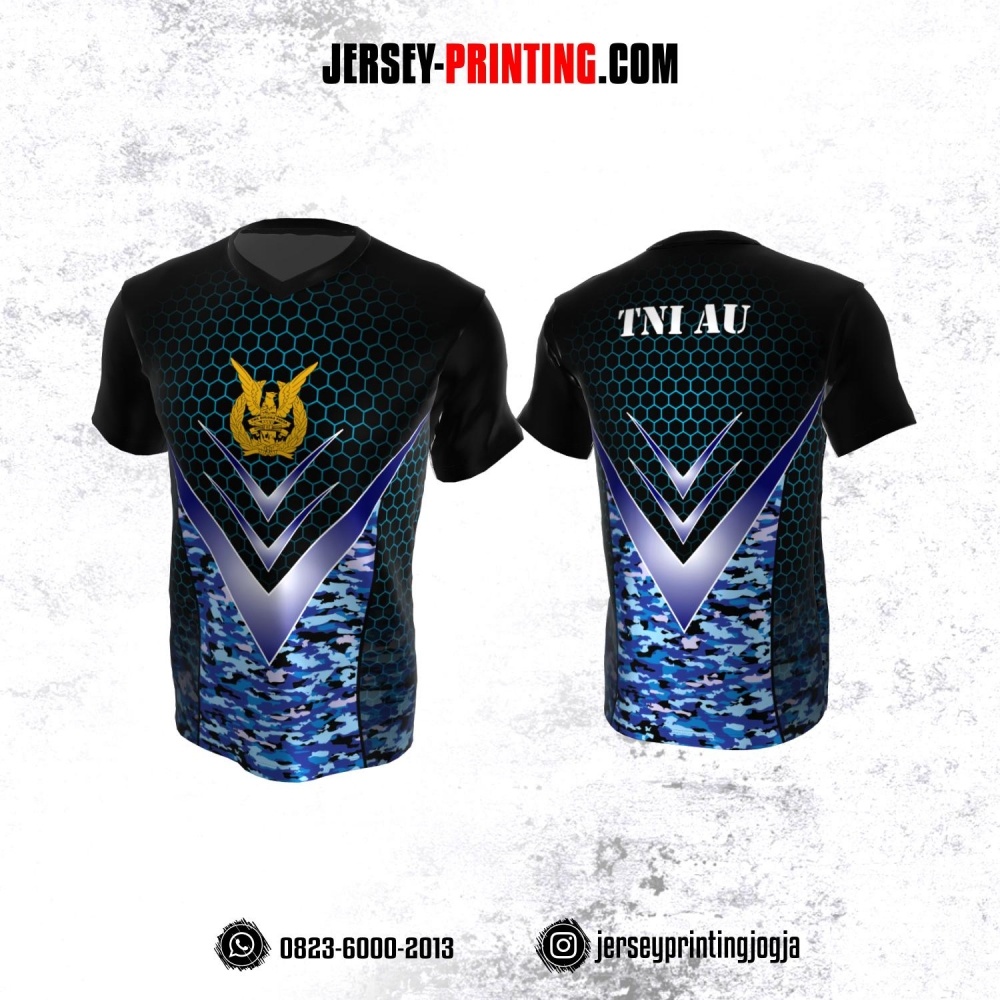 Jersey Militer Tentara TNI AU Angkatan Udara Hitam Biru Tosca Motif Honeycomb dan Loreng