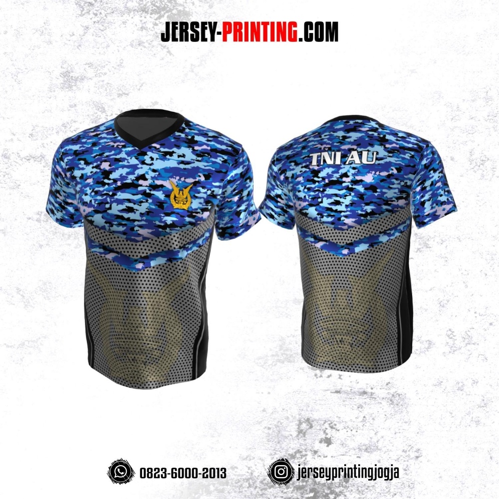 Jersey Militer Tentara TNI AU Angkatan Udara Biru Abu-abu Hitam Motif Loreng dan Polkadot