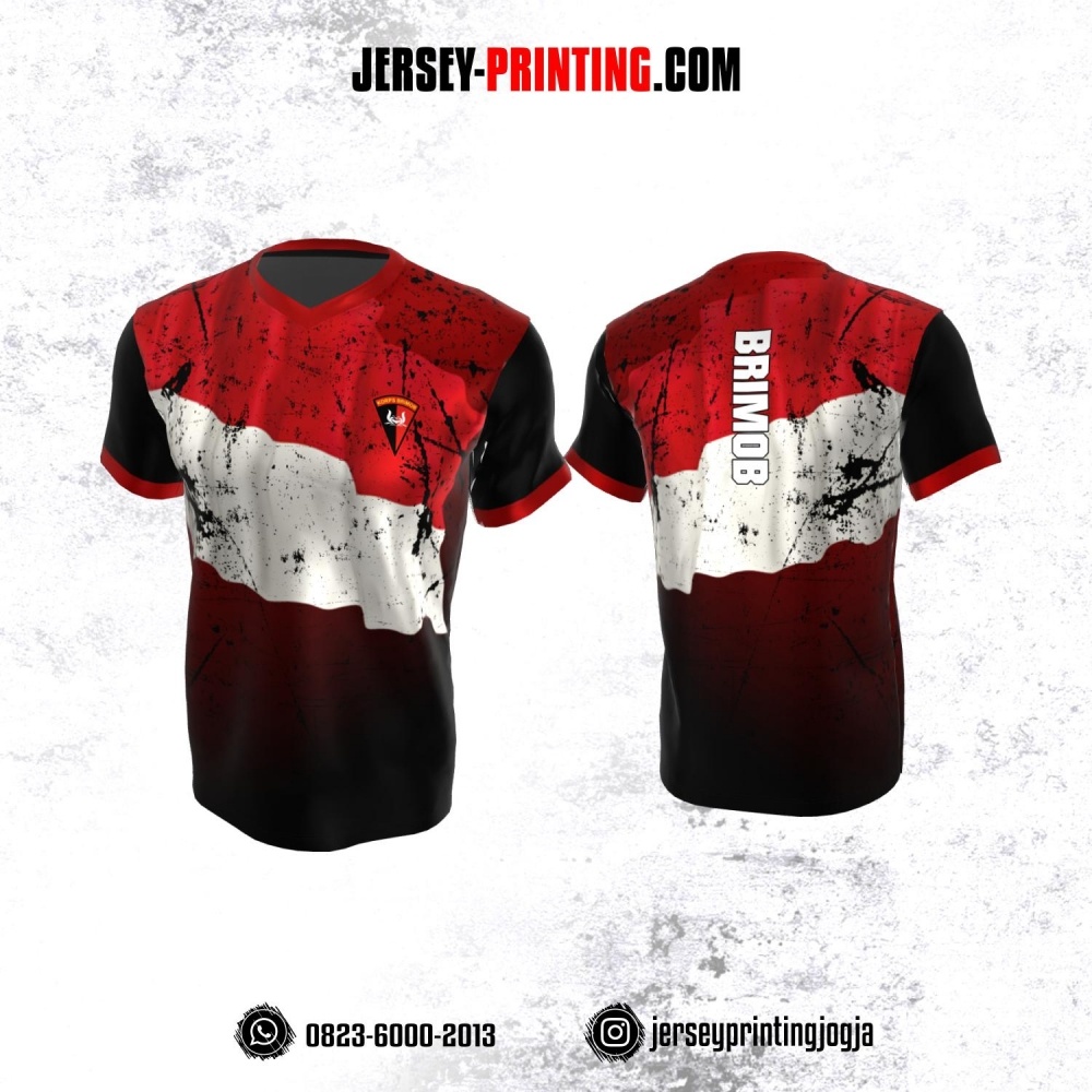 Jersey Polisi Brimob Merah Hitam Putih Motif Bercak