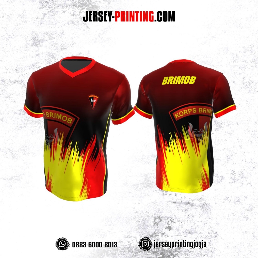 Jersey Polisi Brimob Merah Kuning Hitam Motif Brush