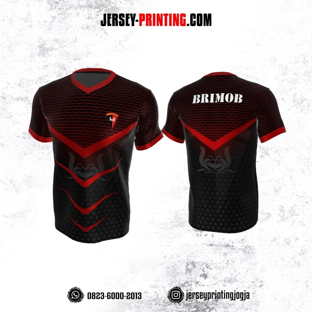 Jersey Polisi Brimob Hitam Merah Abu-abu Motif Seamless