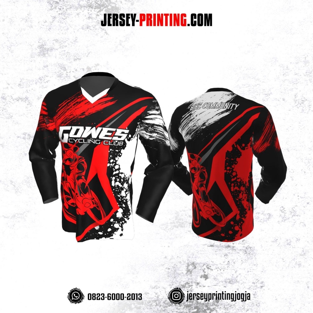 Jersey Gowes Sepeda Hitam Merah Putih Bercak Lengan Panjang