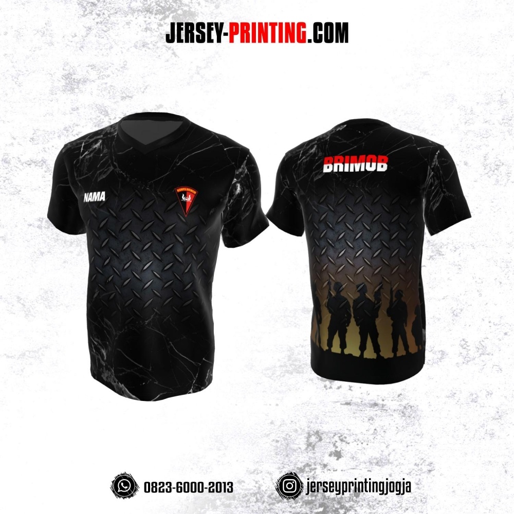 Jersey Polisi Brimob Hitam Abu-abu Orange Motif Seamless
