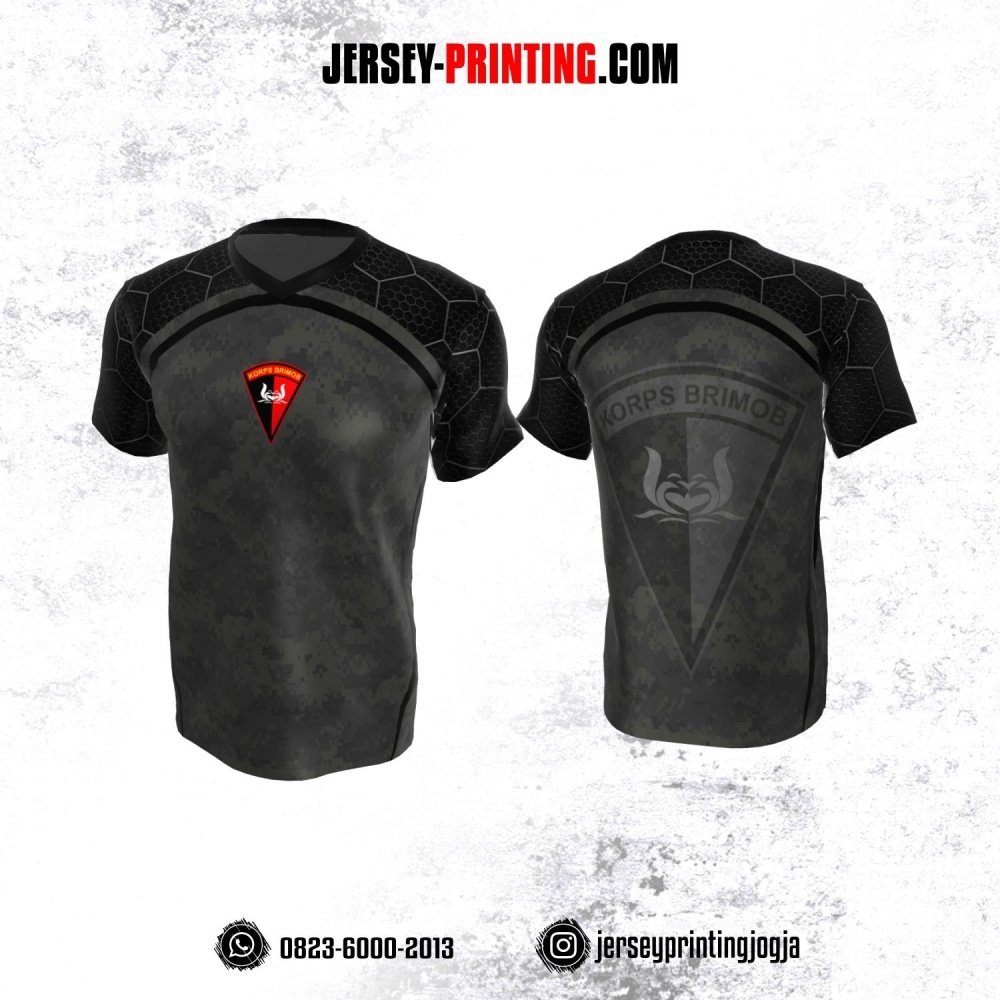 Jersey Polisi Brimob Abu-abu Hitam Motif Abstrak dan Honeycomb