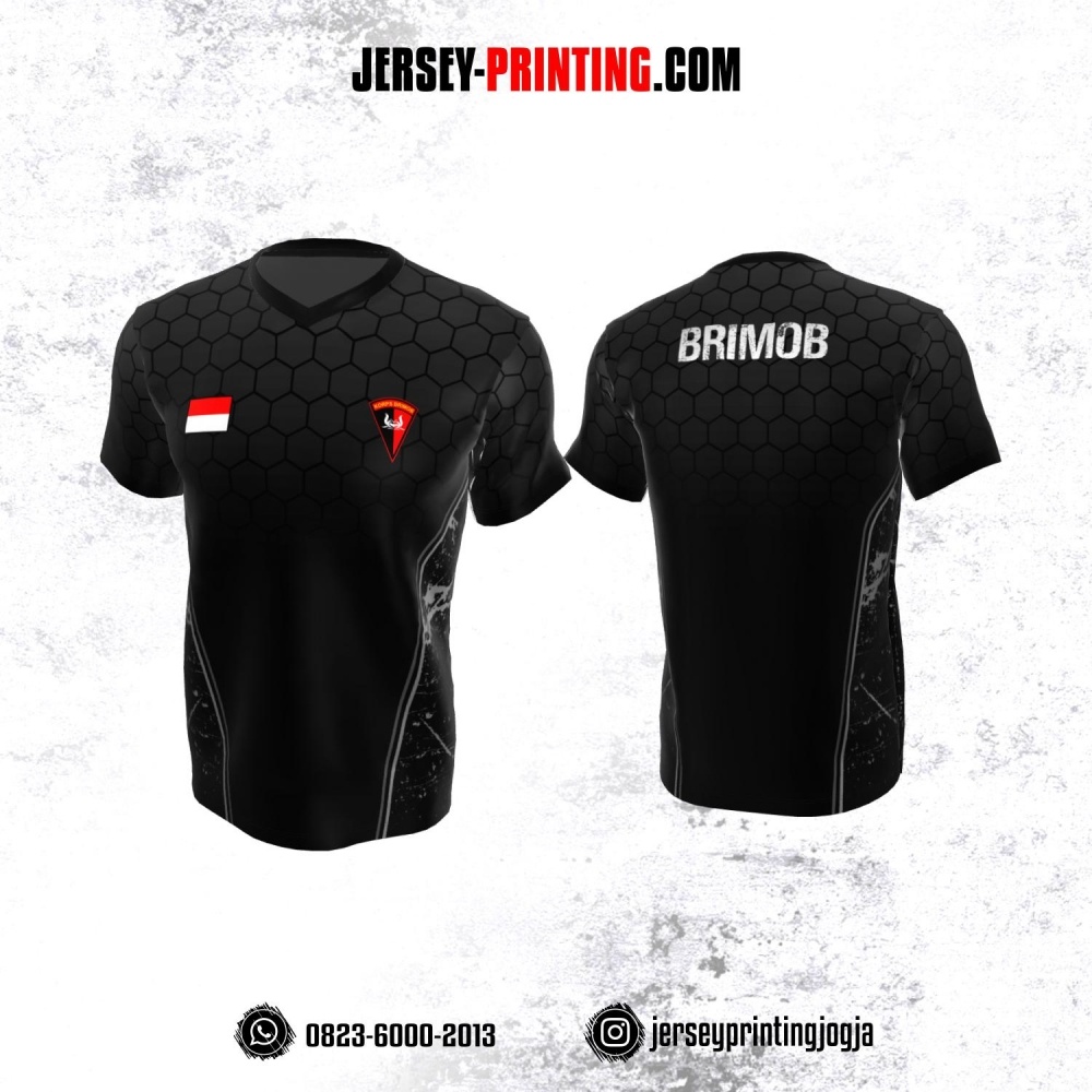 Jersey Polisi Brimob Hitam Abu-abu Motif Honeycomb