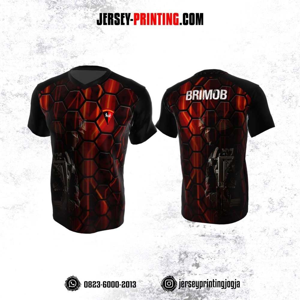 Jersey Polisi Brimob Hitam Merah Motif Hexagon