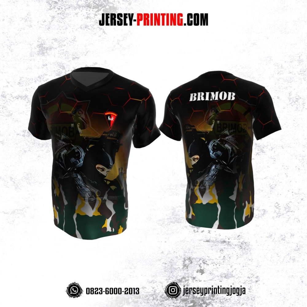 Jersey Polisi Brimob Hitam Kuning Hijau Putih Motif Loreng