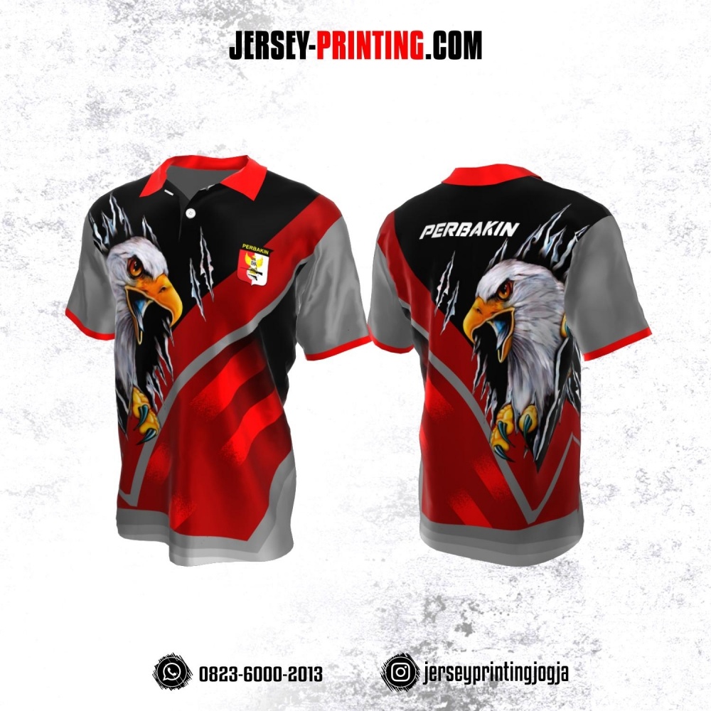Baju Kaos Jersey Menembak Perbakin Kerah Polo Merah Hitam Abu-abu Motif Elang