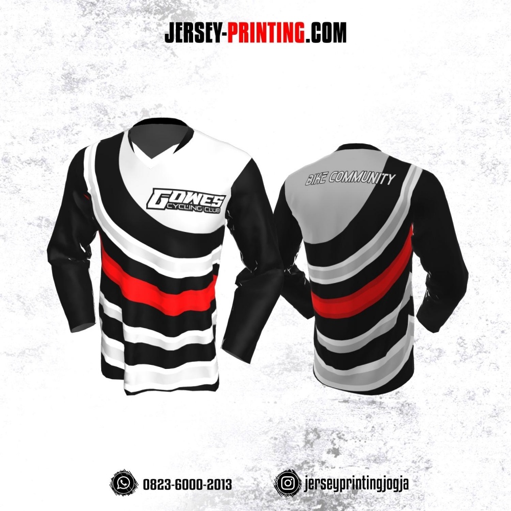 Jersey Gowes Sepeda Hitam Putih Strip Lengan Panjang