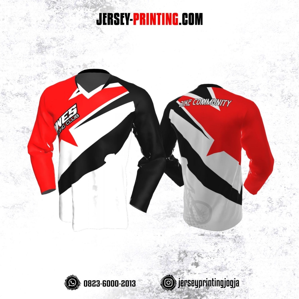 Jersey Gowes Sepeda Hitam Putih Merah Lengan Panjang