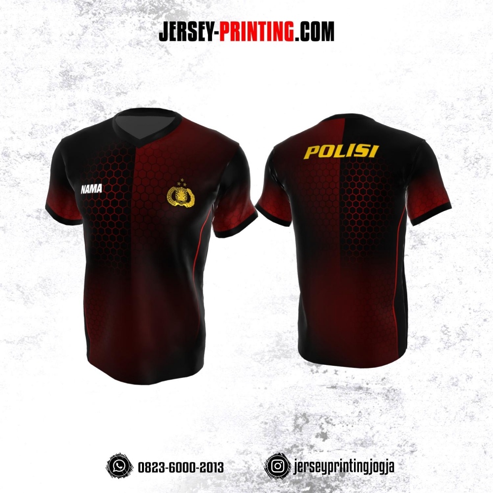 Jersey Polisi Polri Hitam Merah Motif Honeycomb