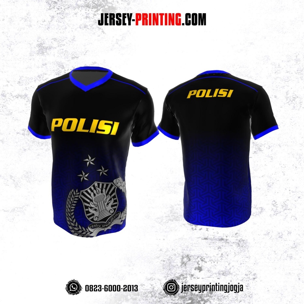 Jersey Polisi Polri Hitam Biru Motif Seamless