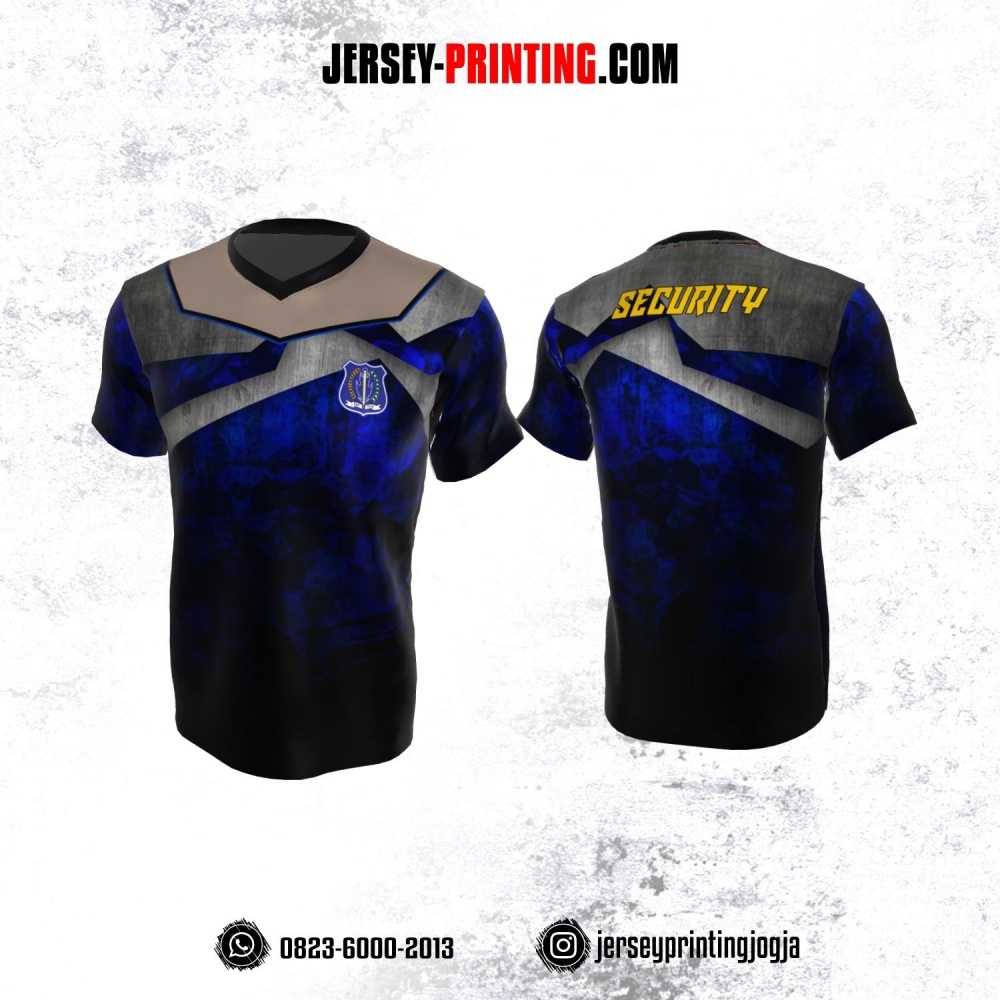 Jersey Security Satpam Hitam Biru Abu-abu Coklat Motif Abstrak