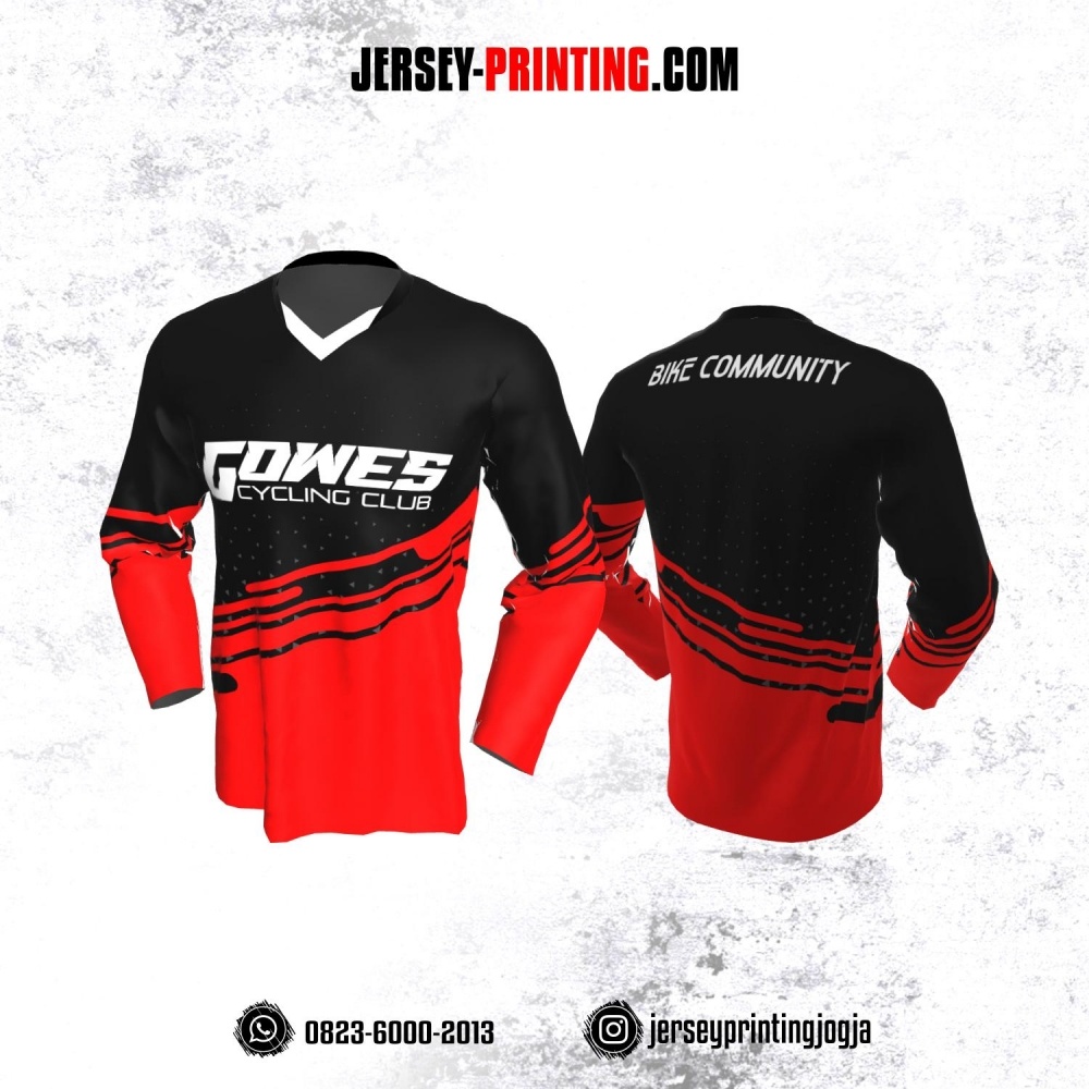 Jersey Gowes Sepeda Hitam Merah Lengan Panjang