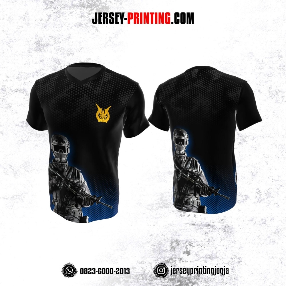Jersey Militer Tentara TNI AU Angkatan Udara Hitam Abu-abu Biru Motif Hexagon dan Polkadot