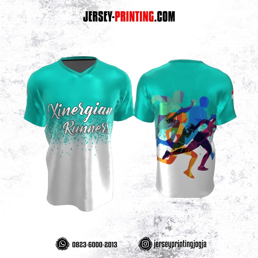 Jersey Lari Toska Putih Motif Titik Kecil Brush Runner Abstrak