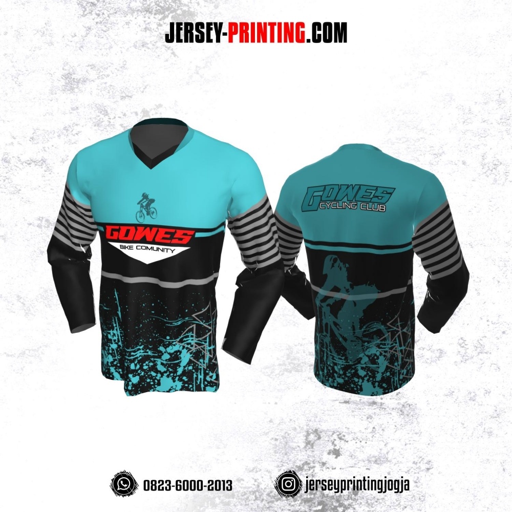 Jersey Gowes Sepeda Hitam Biru Abu Strip Bercak Lengan Panjang