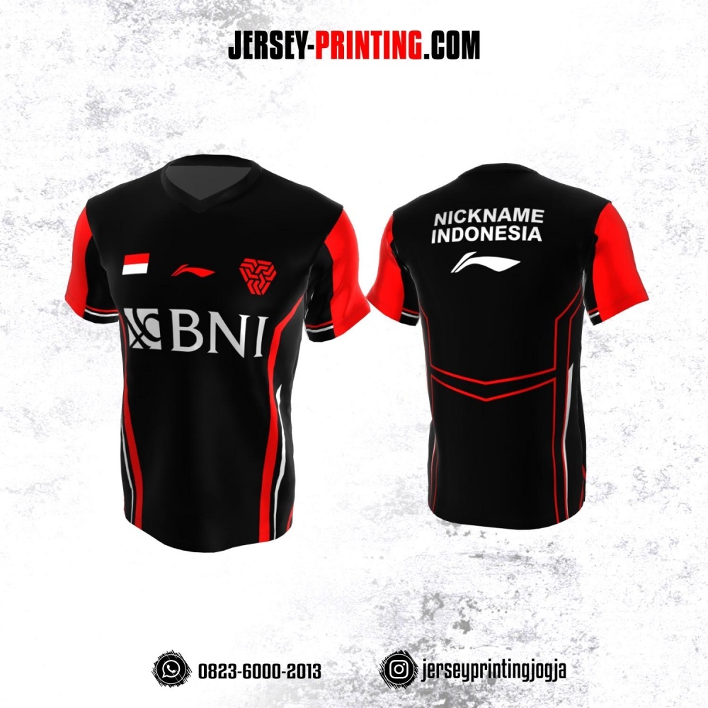 Jersey Badminton Hitam Merah Motif Garis Simple