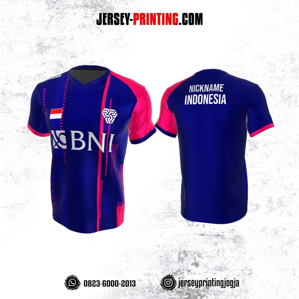 Jersey Badminton Biru Tua Pink Motif Garis Geometris