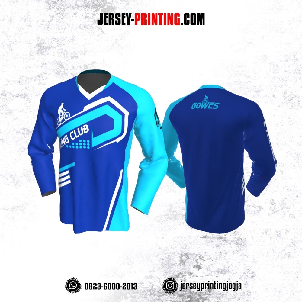 Jersey Gowes Sepeda Biru Putih Strip Polkadot Lengan Panjang