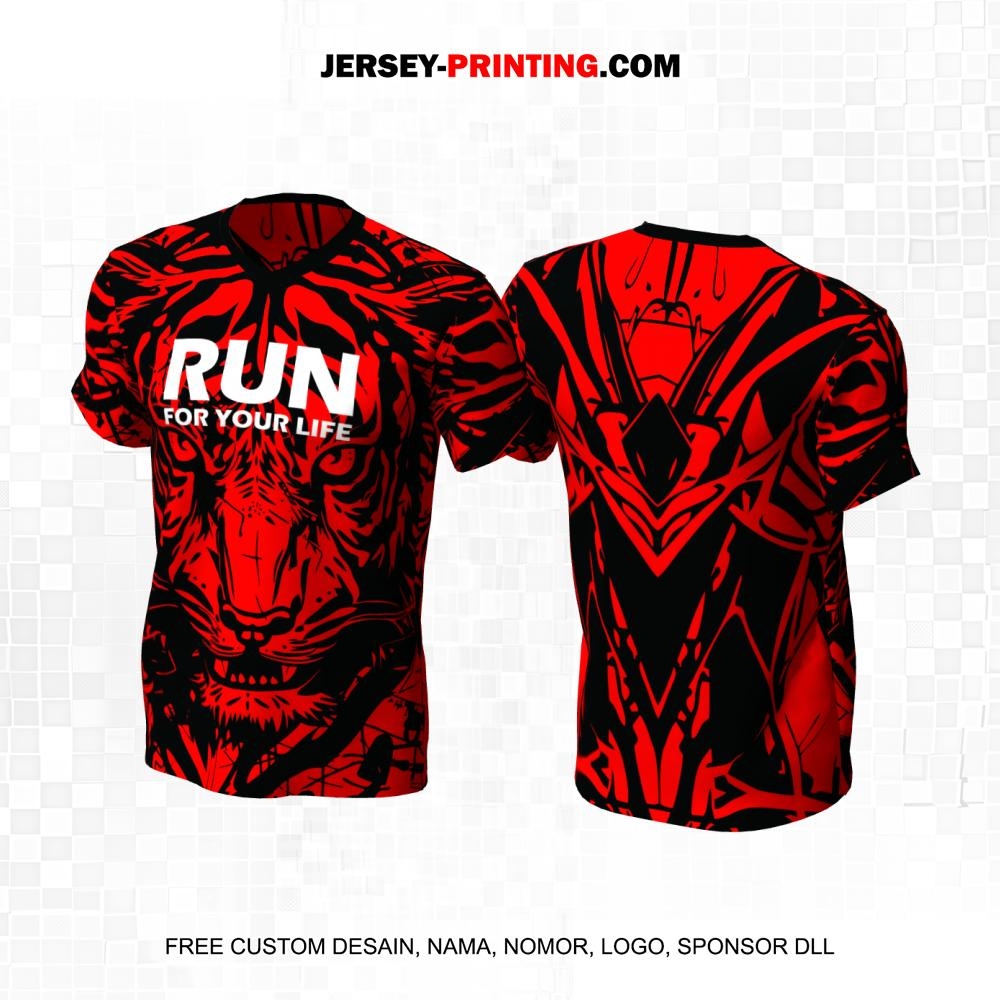 Jersey Lari Macan Harimau Merah Hitam 1