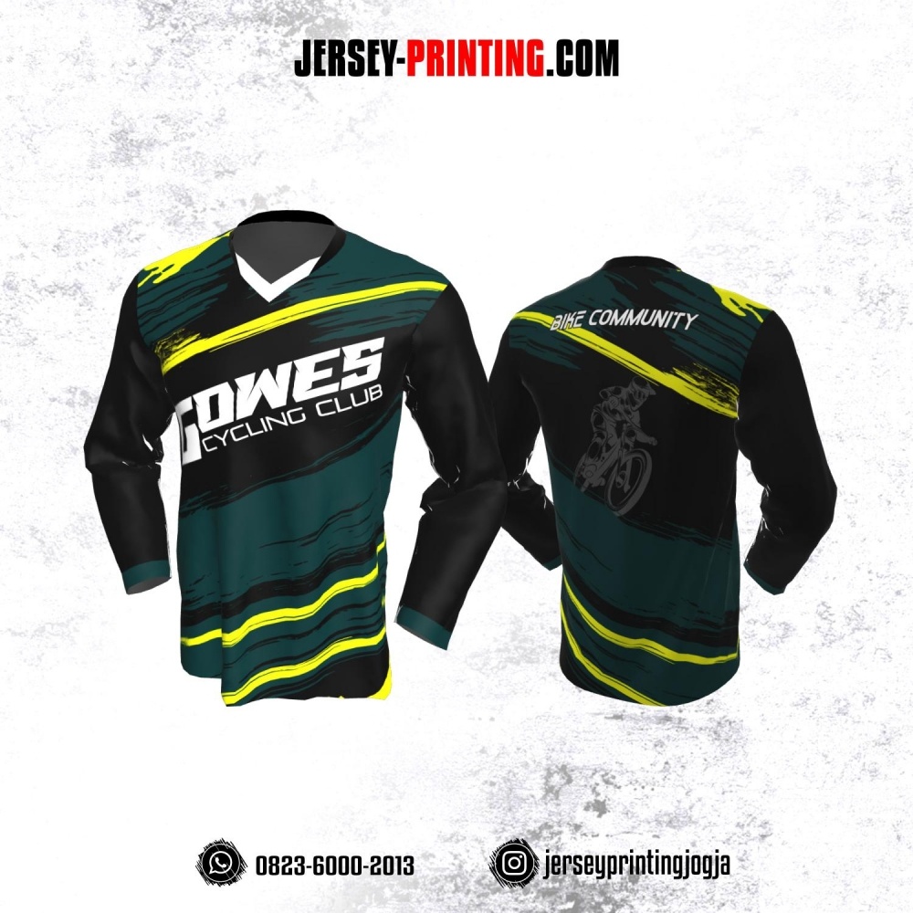 Jersey Gowes Sepeda Hitam Hijau Kuning Lengan Panjang