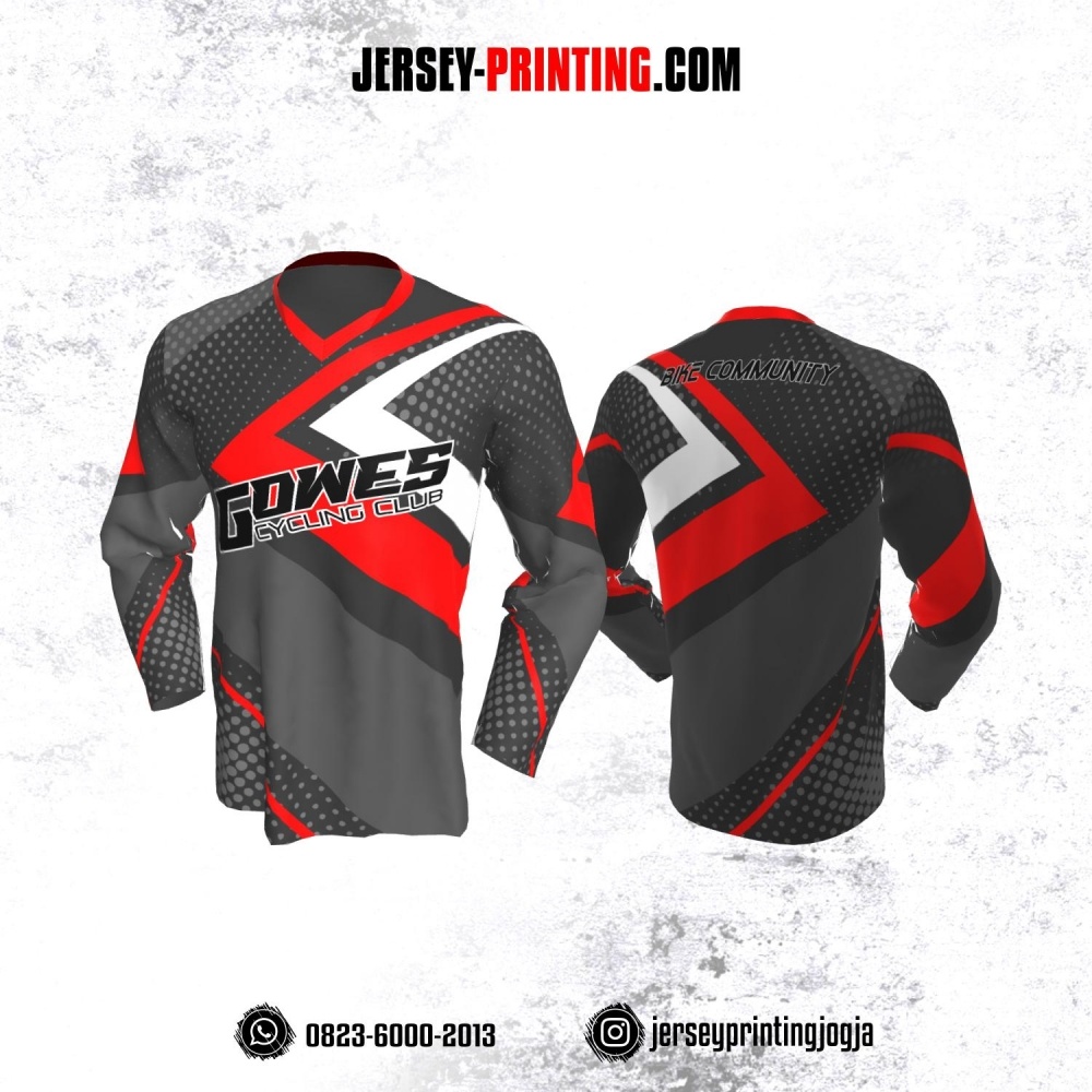 Jersey Gowes Sepeda Abu Merah Putih Polkadot Lengan Panjang
