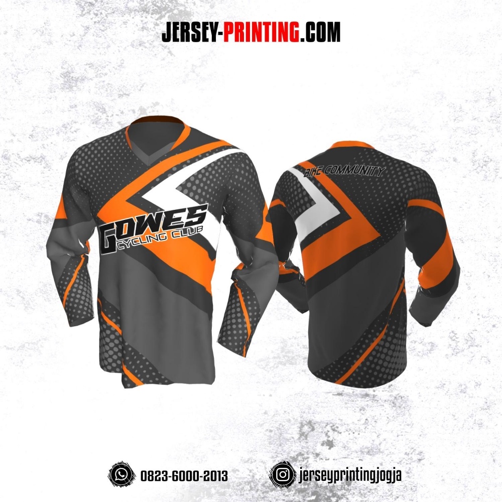 Jersey Gowes Sepeda Abu Orange Putih Orange polkadot Lengan Panjang